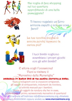 Guidonia Montecelio, il Comitato cittadini attivi di Marco Simone e Setteville Nord, in collaborazione con le Pari opportunità del Comune, organizza per domenica 24 marzo “ Il mercatino delle meraviglie”. L’appuntamento è a partire dalle 9 in via Agosta a Setteville nord. “Si tratta – spiegano gli organizzatori – di un’imperdibile occasione per trovare oggetti […]