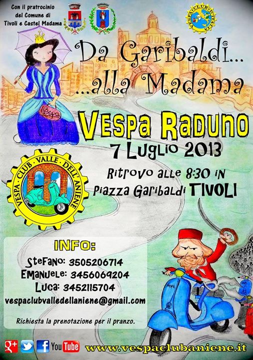 L’appuntamento è per domenica 7 luglio con ritrovo nella centrale piazza Garibaldi di Tivoli alle ore 8,30 con la consegna dei gadget e colazione presso “L’Arist Bar”. Il tempo di ritrovarsi tutti insieme per poi partire per una bella passeggiata con direzione Castel Madama. Dalla piazza la passeggiata turistica si svolgerà seguendo un percorso per via Tiburtina, viale Tomei, via Empolitana attraversando la località Arci e quindi arrivo a Castel Madama per le 11,30. Qui l’aperitivo offerto ai partecipanti presso il bar “2 Pini”. Alle 12 si torna in sella con destinazione al ristorante “Laghi dei reali” per il pranzo di tutti i partecipanti.