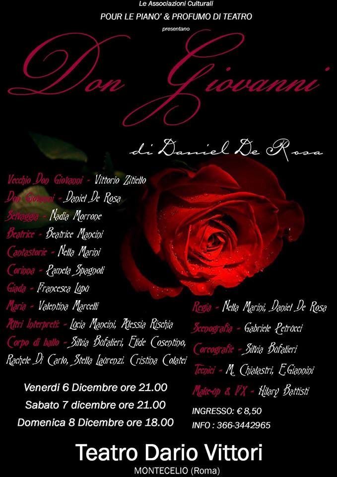 Guidonia Montecelio, le associazioni Pour le piano & Profumo di teatro porteranno in scena al teatro Vittori di Montecelio “Don Giovanni” di Daniel De Rosa.