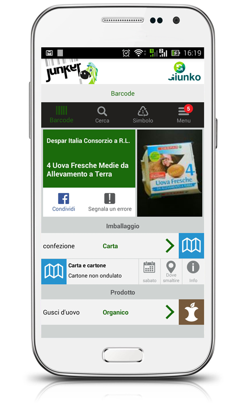 Scansionando il codice a barre del prodotto o dell’imballaggio, Junker lo riconosce grazie ad un database interno di oltre un milione di prodotti, ne indica la scomposizione nelle materie prime e i bidoni a cui sono destinati.