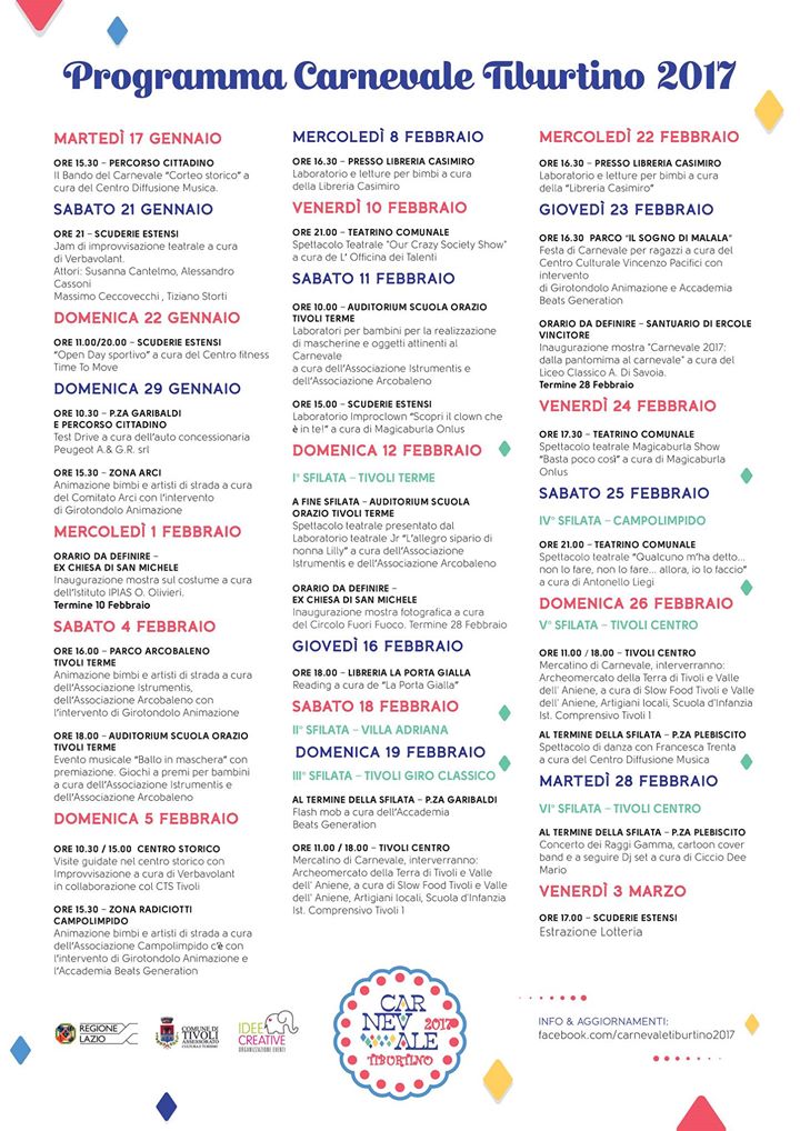Tutti gli aggiornamenti qui (pagina ufficiale Carnevale Tivoli 2017)