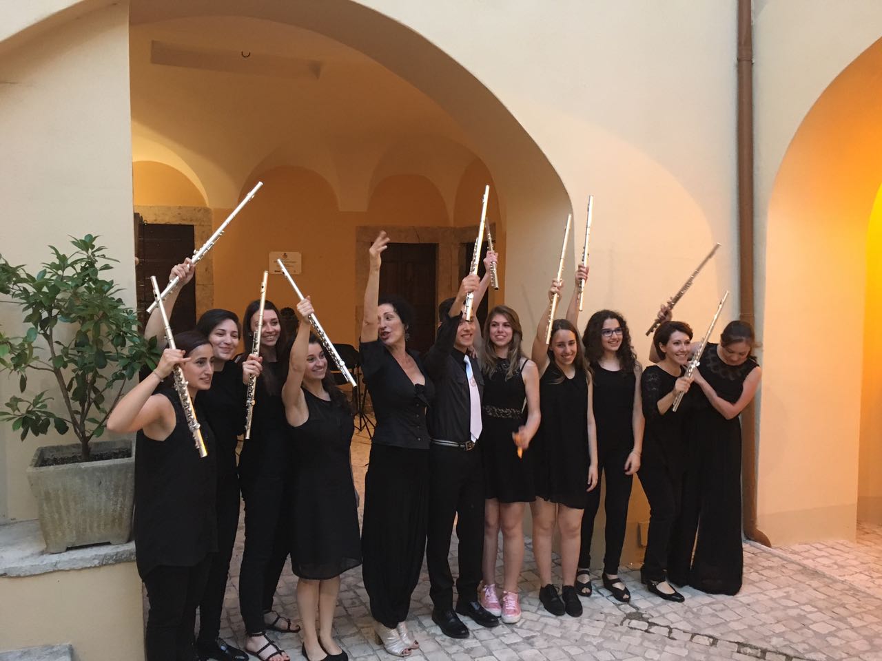 Ensemble FlautTiAmo: Il giorno 11 giugno alle Scuderie Estensi si è tenuto un concerto organizzato dall’associazione “Amici della Musica di Tivoli” e dalla “Fenice Academy of Arts” in collaborazione con il Comune della città tiburtina. “Il flauto…che passione” era il titolo dell’evento che ha visto come protagonisti giovani flautisti diretti dal M° Giustina Marta, titolare della Cattedra di Flauto nella scuola “A. Baccelli” di Tivoli.