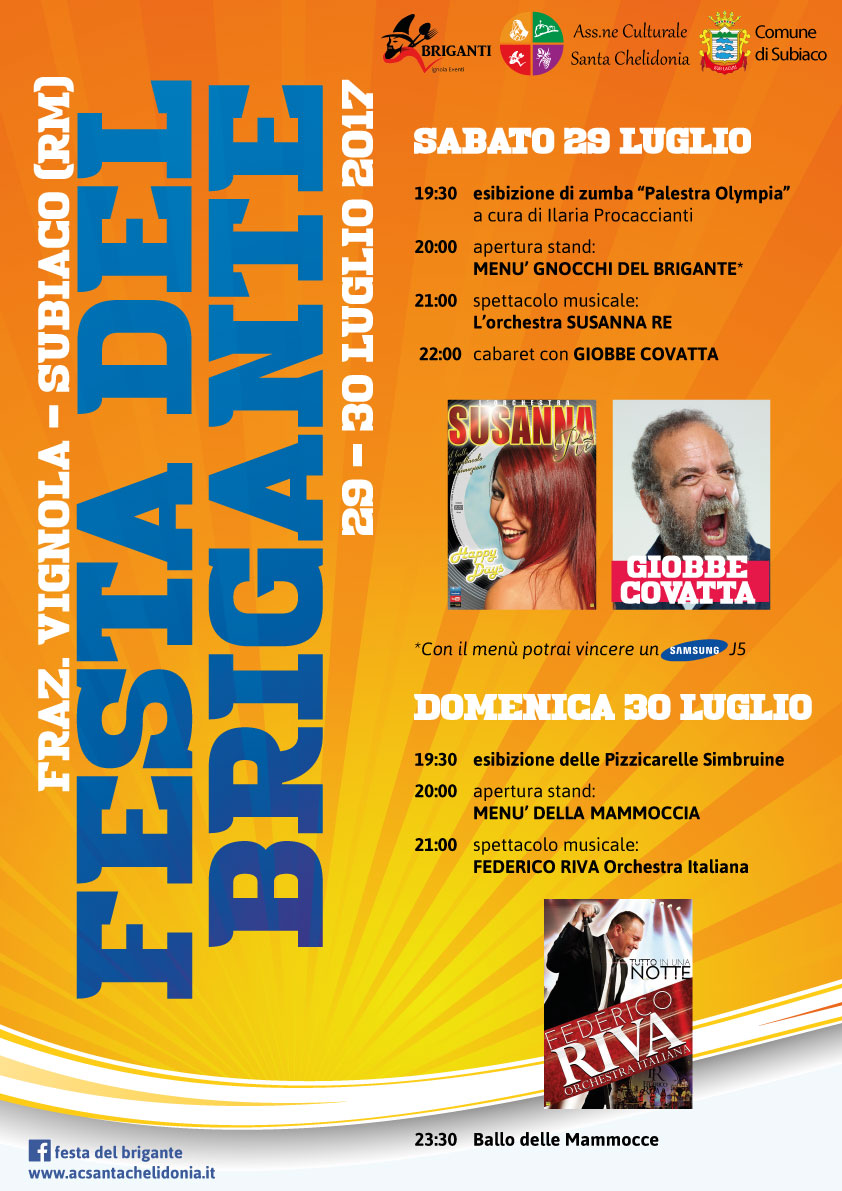 Festa del Brigante: il verde incontaminato e l’aria pulita della più grande frazione di Subiaco, Vignola, accoglieranno anche quest’anno, il 29 e 30 Luglio, la tradizionale Festa del Brigante, ormai giunta alla sua settima edizione.