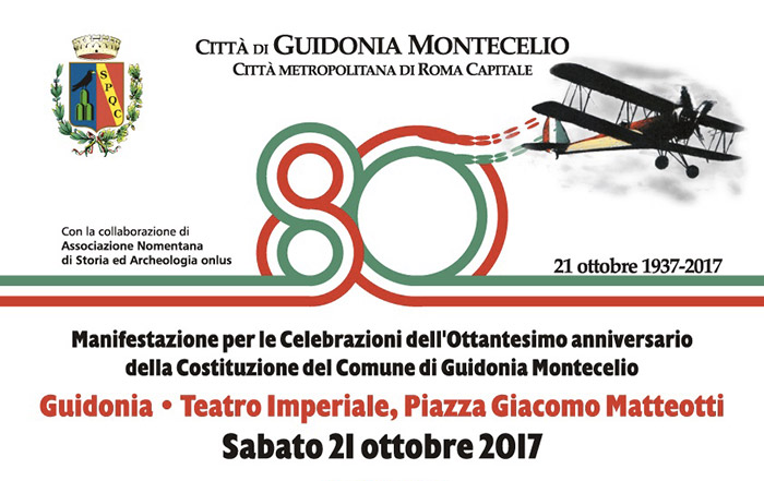 Guidonia Montecelio compie 80 anni: sabato 21 i festeggiamenti presso il cinema Imperiale. Foto, filmati, presentazioni, mostre, tutto per celebrare quella che negli anni è diventata la terza città del Lazio. Alle 10 è prevista la deposizione della corona al monumento del generale Alessandro Guidoni su via Roma per poi proseguire a partire dalle 16.30 in teatro. “Sabato prossimo – scrive il sindaco Michel Barbet sul suo profilo facebook – in occasione degli 80 anni dall’istituzione del comune di Guidonia Montecelio, l’amministrazione in collaborazione con l’associazione Nomentana di Storia e Archeologia ed altri cittadini volontari ha organizzato una giornata di festeggiamenti per commemorare l’evento”.