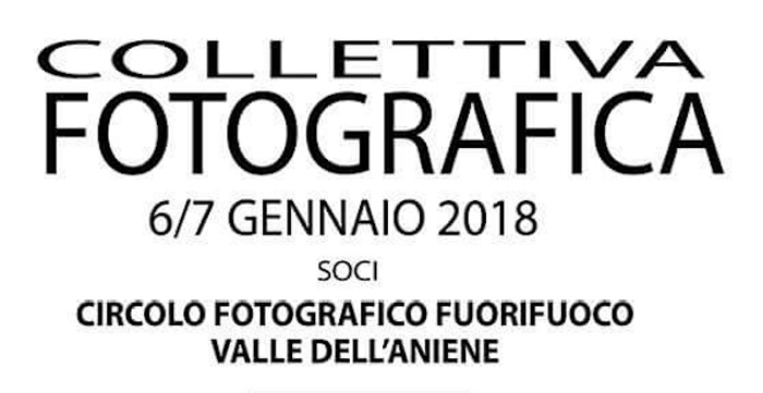 Il 6 e 7 gennaio, nell’ex chiesa di San Michele in via Palatina, esposizione degli scatti del circolo Fuori Fuoco Valle dell’Aniene. In mostra le fotografie di: Paola Aucelli, Franco Bonfiglio, Massimo Capparella, Paolo De Chellis, Giuseppe Cordella, Francesca Dini, Anna Faienza, Andrea Leggeri, Luigi Malatesta, Roberta Monaco, Franco Orlando, Michele Pedone, Antonio Perrone, Valentina Perrone, Livia Piervenanzi, Simona Ranieri, Barbara Sabbi, Giovanni Sarrocco, Alessandro Teodori, Lorenzo Vian.