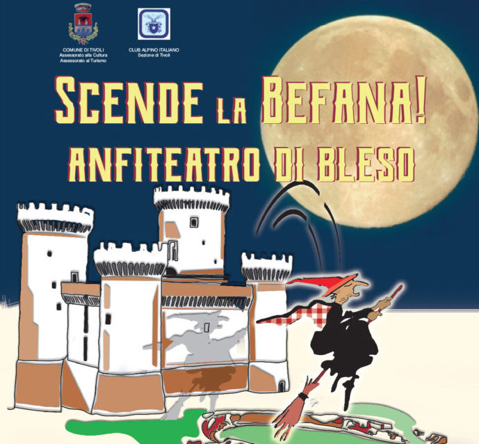 • Anfiteatro di Bleso, ore 17.00 LA BEFANA SCENDE DALLE “TORRI” A seguire distribuzione di dolciumi, a cura del CAI e della Squadra Soccorso Alpino – Sez. Tivoli in collaborazione con Circolo “Legambiente” e Associazione “Idee Creative” di Tivoli