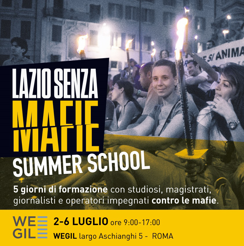 Si svolgera’ dal 2 al 6 luglio presso il WeGil di largo Ascianghi 5 la Summer School “Lazio Senza Mafie”. Si tratta di un’esperienza formativa speciale promossa dalla Regione Lazio rivolta a studenti universitari, operatori dell’antimafia sociale, amministratori pubblici e ordini professionali.