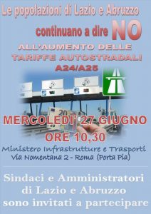 Autostrada pedaggi A24: i Sindaci al Ministero delle Infrastrutture il 27 giugno