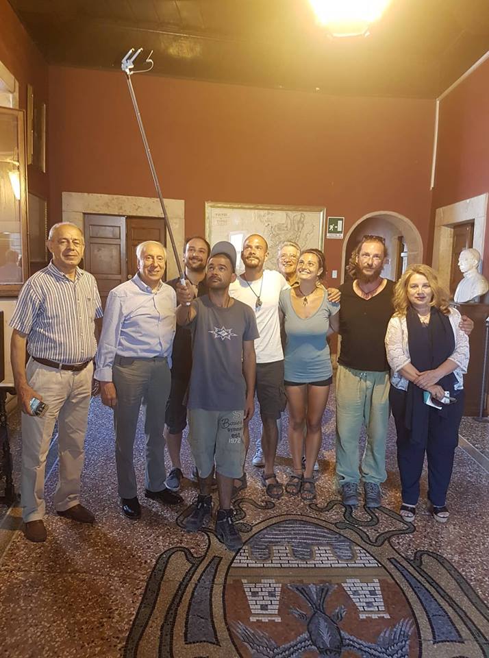 La cilena Giannina, l’albanese Edi e l’italiano David oggi hanno fatto tappa a Tivoli e hanno portato il loro speciale messaggio di pace in municipio, salutati dal Sindaco Giuseppe Proietti e da alcuni amministratori comunali.