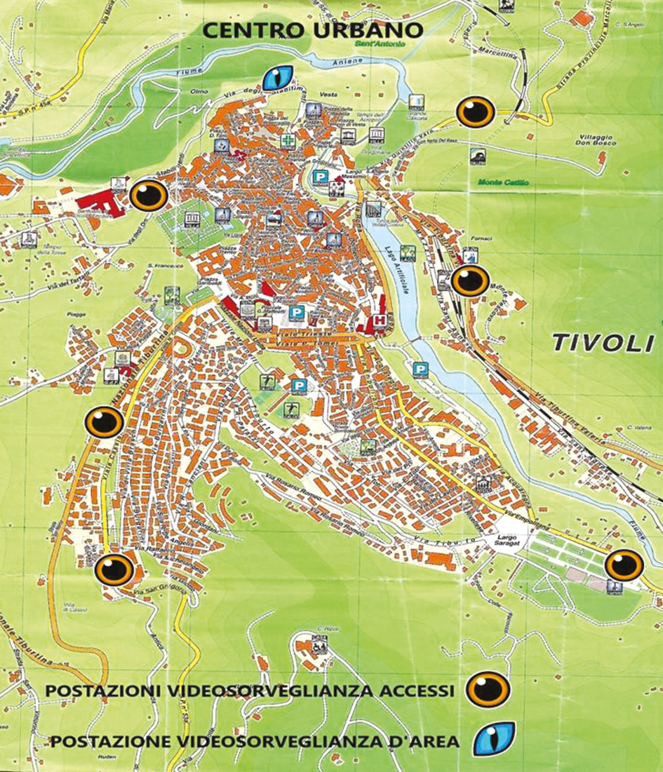 Il sistema prevede sei postazioni di ripresa dislocate presso i principali punti di accesso al centro citttadino: via Tiburtina Valeria; via Quintilio Varo; via Empolitana; via Nazionale Tiburtina; piazza San Nicola; viale Cassiano.