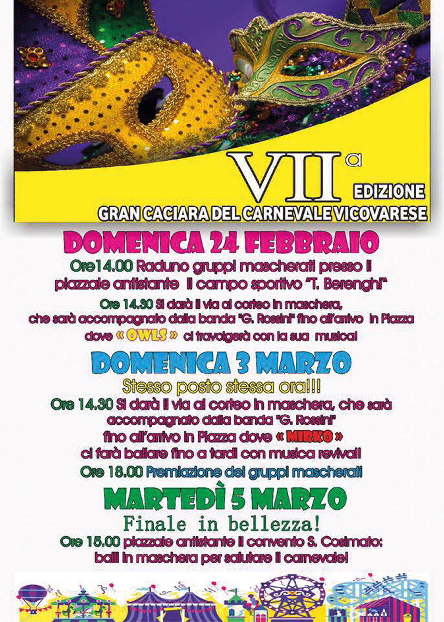 Giunta alla sua settima edizione la manifestazione Gran Caciara del Carnevale Vicovarese con il seguente programma: