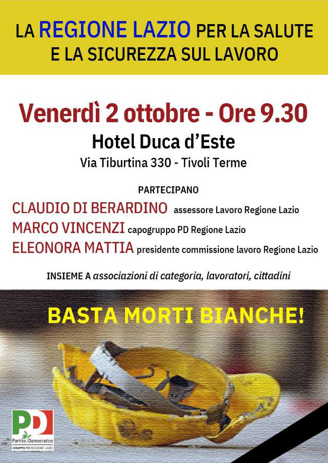 “Bene la convocazione a Tivoli del Tavolo sulla salute e sicurezza sul lavoro voluto dall’assessore regionale Di Berardino. Dopo il tragico incidente di questa mattina, che ha visto il decesso di un operaio a Tivoli Terme, questa convocazione e’ un importante segno d’attenzione da parte della Regione Lazio verso il territorio Tiburtino. Sara’ importante ribadire in questo tavolo la necessita’ di proseguire le azioni volte alla prevenzione, la formazione e la vigilanza sui luoghi di lavoro, rafforzando la collaborazione con parti sociali, associazioni di categoria, imprenditori e lavoratori, affinche’ diminuiscano sempre piu’ disgrazie come quella di oggi”. Cosi’ in un comunicato Marco Vincenzi, presidente del gruppo del Partito Democratico in Consiglio regionale del Lazio.