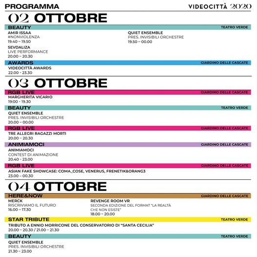 La serata di presentazione del festival è stata caratterizzata da giochi di luce e dalla performance audiovisuale del collettivo Quiet Ensemble, proprio davanti al laghetto. Protagonista della serata inaugurale sara’, invece, Sevda Alizadeh, in arte Sevdaliza, artista iraniana alla ribalta della scena musicale internazionale e attiva su temi come i diritti delle donne e il femminismo, in linea con il tema di Videocittà 2020 contro ogni violenza. “Stasera credo che abbiamo provato un’emozione forte con i giochi di luci e con la riapertura delle cascate- ha commentato l’amministratore delegato di Eur spa, Antonio Rosati- Mi auguro che da domani verranno a vederle numerosi romani perché da oltre 50 anni erano abbandonate ed erano diventate una discarica.