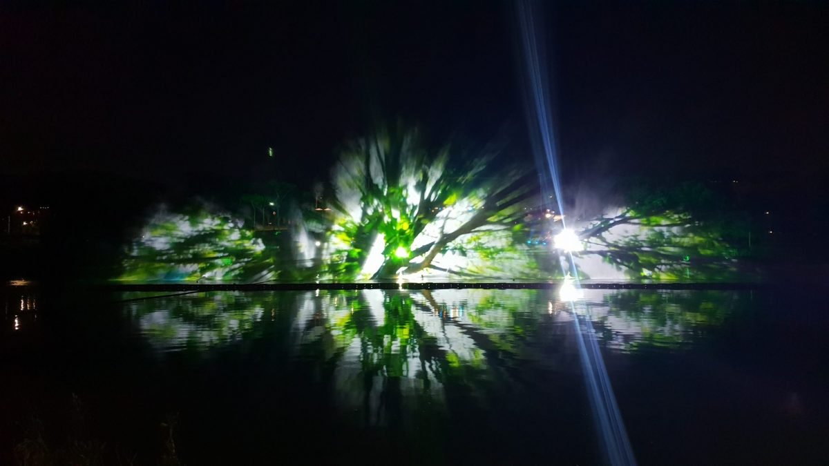 Un impressionante spettacolo di luci, che danzano con i riflessi del laghetto dell’Eur di Roma e con quelli creati dagli schizzi d’acqua delle fontane, giocando con suoni potentissimi e onirici.