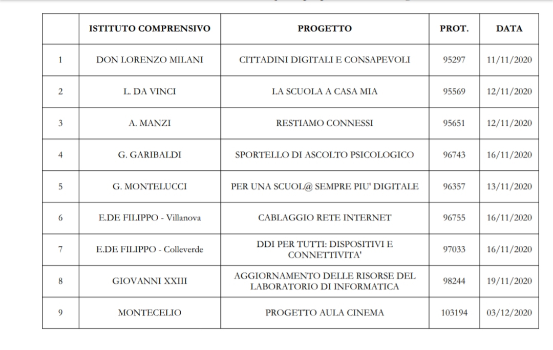 Approvati e finanziati con quasi 20mila euro (19.800 per la precisione) una serie di progetti presentati dalle scuole del territorio di Guidonia Montecelio. Si va dal digitale allo sportello psicologico fino al cinema.