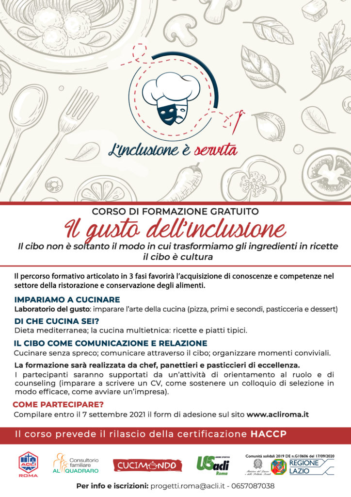 Un corso di cucina gratuito per acquisire conoscenze e competenze nel settore della ristorazione e conservazione degli alimenti, ma anche per favorire l’inclusione sociale. È l’iniziativa delle Acli di Roma e provincia, che prenderà il via a settembre e per la quale sono aperte le iscrizioni (https://. C’è tempo fino al 7 settembre 2021). Il percorso formativo sarà articolato in 3 fasi: “Impariamo a cucinare”, un laboratorio del gusto per imparare l’arte della cucina (fantasie di pizza, primi e secondi piatti, piccola pasticceria e dessert); “Di che cucina sei?”, per approfondire la conoscenza della dieta mediterranea e della cucina multietnica con ricette e piatti tipici; “Il Cibo come comunicazione e relazione” per cucinare senza spreco, comunicare attraverso il cibo e organizzare momenti conviviali. La formazione sarà realizzata da professionisti chef, anche stellati, panettieri e pasticceri di eccellenza e i partecipanti saranno supportati da un’attività di orientamento al ruolo e di counseling (per imparare a elaborare il proprio CV, come sostenere un colloquio di selezione in modo efficace, come avviare un’impresa). Il corso prevede anche il rilascio della certificazione Haccp.