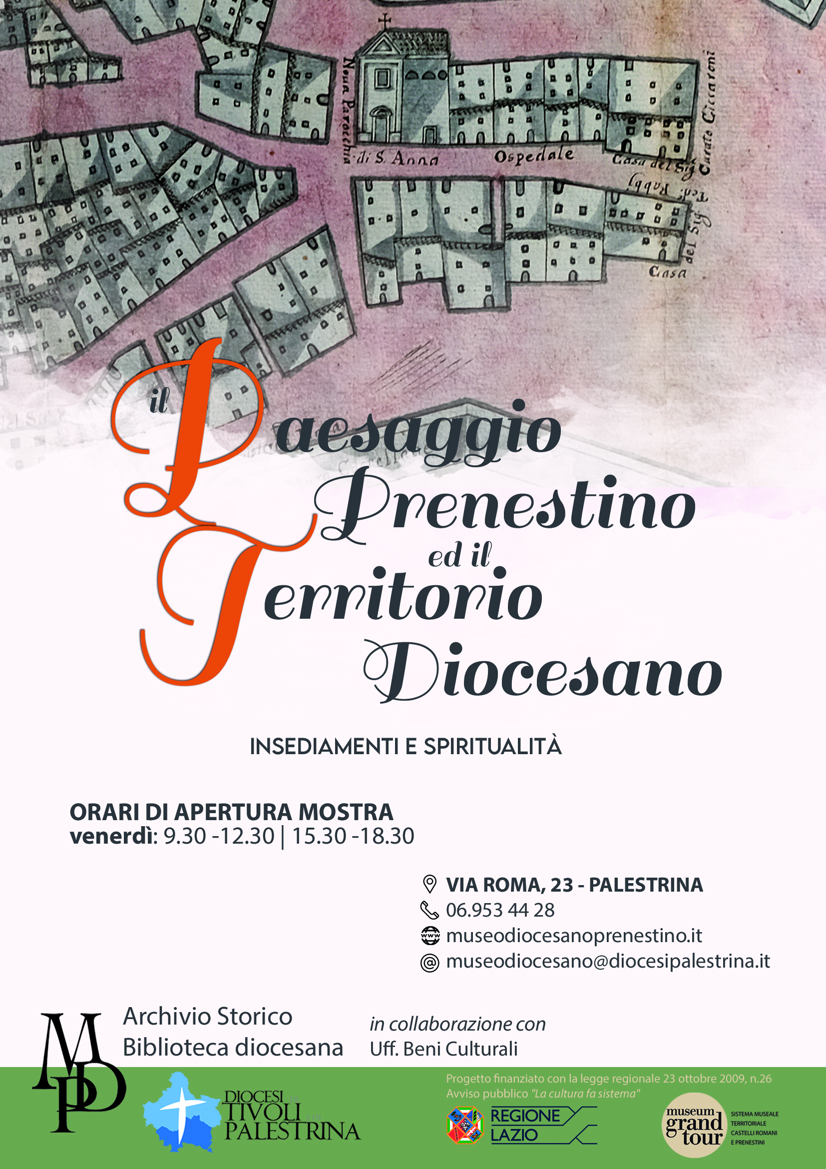 Gli istituti culturali della Diocesi di Palestrina, Archivio storico, Biblioteca e Museo di arte sacra hanno realizzato, al termine di un percorso di studio e ricerca, una mostra dal titolo Il paesaggio prenestino e il territorio diocesano: insediamenti e spiritualità. Oggetto dell’esposizione è il paesaggio locale, indagato nelle sue diverse dimensioni: storica, artistica e spirituale nell’ambito di un progetto strutturato con il Sistema museale Museumgrandtour, la rete di musei dei Castelli romani e prenestini.
