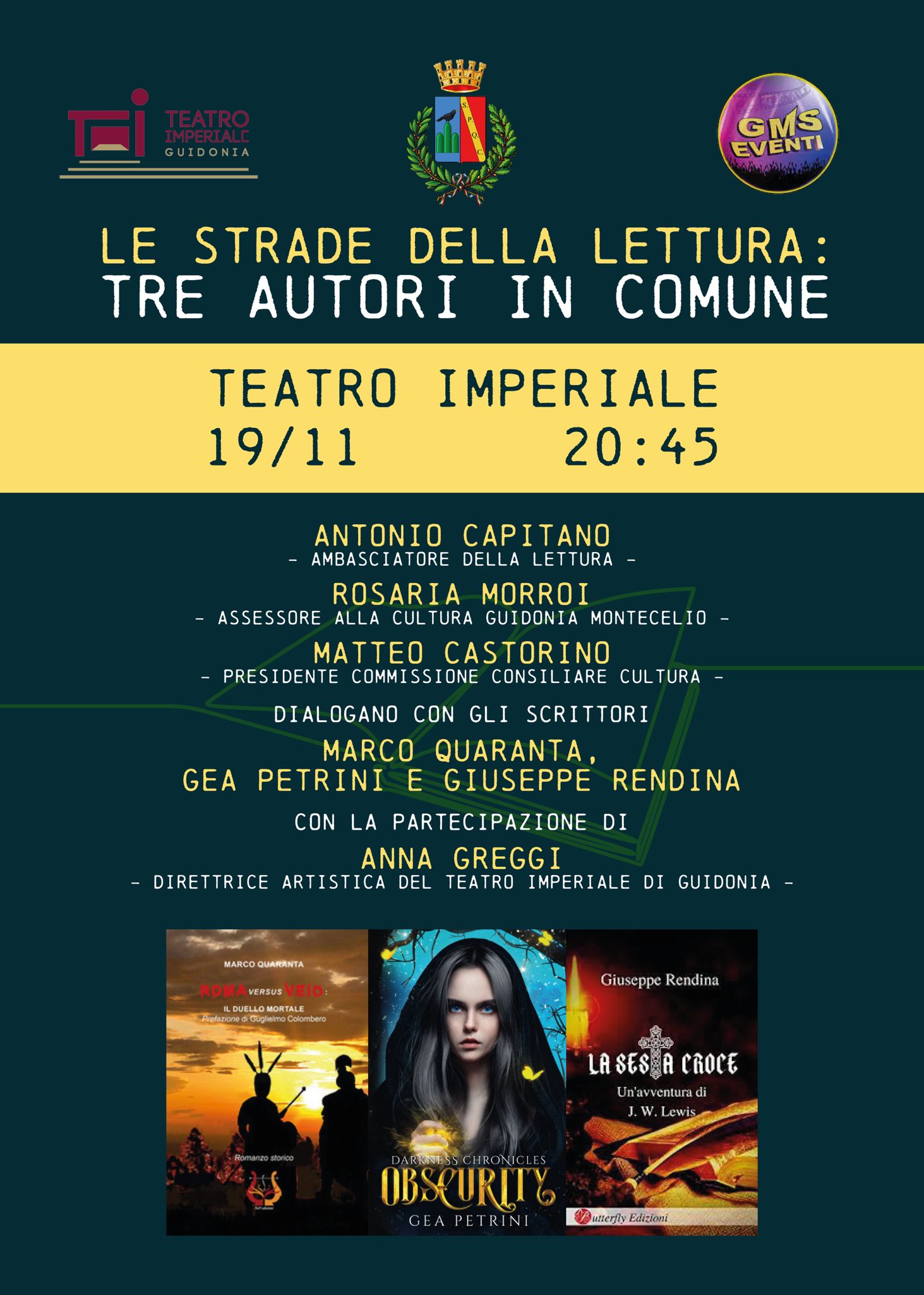 “Le strade delle lettura: tre autori in Comune” al teatro Imperiale