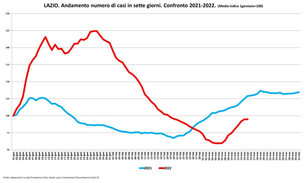 “I casi subiscono una accelerazione legata in prevalenza alla popolazione giovanile, ai positivi asintomatici e ai casi di reinfezione. Assistiamo a una correlazione su base settimanale dei primi mesi del 2021 con quelli del 2022. Nell’anno in corso i casi, su base settimanale, hanno una lunga discesa a partire dalla fine di gennaio e diminuiscono per 37 giorni consecutivi fino ai primi di marzo. Nel 2021 i casi iniziano a scendere dal 10 di gennaio fino a fine febbraio. Ai primi di marzo assistiamo ad una risalita. Se prendiamo come base 100 il primo gennaio di entrambi gli anni, le curve nelle fasi di aumento e diminuzione sono molto simili, ma la curva del 2022 è al di sotto di quella del 2021. Bisogna dire che al momento attuale non si registra una particolare pressione sulla rete ospedaliera, che rientra nella normalità. Il virus non è sconfitto e il 31 marzo, con la fine dello stato di emergenza, non può essere interpretato come un segnale di tana libera tutti“. Lo dichiara l’Assessore alla Sanità della Regione Lazio, Alessio D’Amato.(Dire)