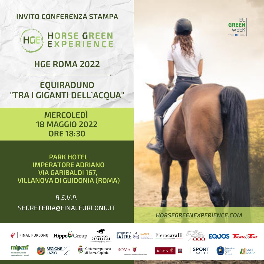 Conferenza stampa di presentazione della manifestazione Horse Green Experience e dell’Equiraduno “Tra i giganti dell’acqua” in programma mercoledì 18 maggio al Park Hotel Imperatore Adriano di Villanova di Guidonia