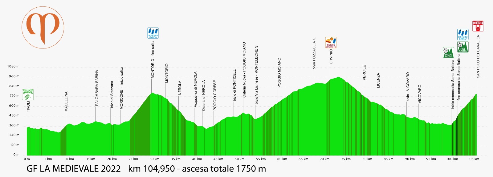 ’’ Una modifica dovuta per la sicurezza dei partecipanti – ha commentato Alessandro Malagesi Direttore di Organizzazione – il fondo stradale da Moricone fino ad Osteria Nuova è molto sconnesso e il transito dei corridori in gruppo renderebbe troppo pericoloso quel tratto di strada. Svoltando a destra da Moricone si salirà per circa 5 km e poi si svolterà a sinistra in direzione Montorio. Il chilomentraggio sarà sempre lo stesso ma il dislivello sarà di circa 200 metri, portando il dislivello totale della gara a 1750 metri. Certi della comprensione dei partecipanti, vi diamo