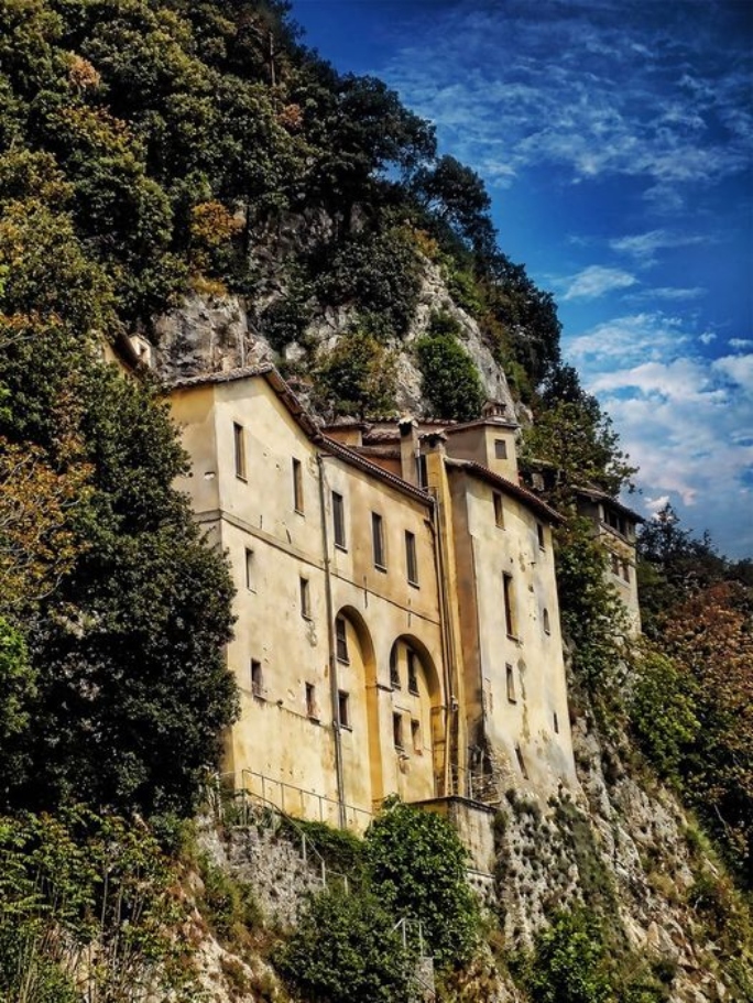 A due chilometri dal borgo si trova il Santuario di Greccio, caratterizzato da un’architettura molto essenziale, anch’esso visitabile durante le Giornate d’Autunno 2022. Un’occasione importante, alla vigilia dell’anniversario degli 800 anni dalla nascita della tradizione del Presepe. Nel 1223, infatti, San Francesco si trovava a Greccio e qui, grazie all’aiuto del signore del luogo Giovanni Velita, volle rievocare la nascita di Gesù durante la Messa di Natale. Fu allestita la grotta – ove ora si trova il santuario, detto infatti la Betlemme francescana – con la mangiatoia e il fieno, un bue e un asinello. La sera del 25 dicembre giunsero a Greccio molte persone, frati e uomini e donne della zona: gli stessi fedeli erano parte integrante del presepe e durante la Messa uno dei presenti vide giacere nella mangiatoia Gesù Bambino stesso. Il percorso, che si dovrà svolgere nel rispetto del silenzio, toccherà la grotta in cui avvenne la prima rievocazione della natività di Gesù; si passerà attraverso il refettorio dei primi frati seguaci del Santo e nel dormitorio, per giungere alla cella di San Francesco, dove riposava con il capo sulla nuda pietra. Si vedrà poi la piccola cantina dei frati, il pulpito di San Bernardino da Siena e l’ossario per salire al piano superiore ed ammirare il conventino di San Bonaventura di Bagnoreggio, tutto in legno ed usato ininterrottamente per sette secoli. Le ultime tappe saranno nel coro ligneo del XVII secolo con il leggio centrale e la grande lampada ad olio per le preghiere serali e la chiesa superiore con un bel dipinto di scuola umbra. Uscendo sul piazzale sarà possibile visitare la chiesa moderna, realizzata nel 1959, e il Museo del Presepe realizzato con donazioni di statuine provenienti da varie parti del mondo.