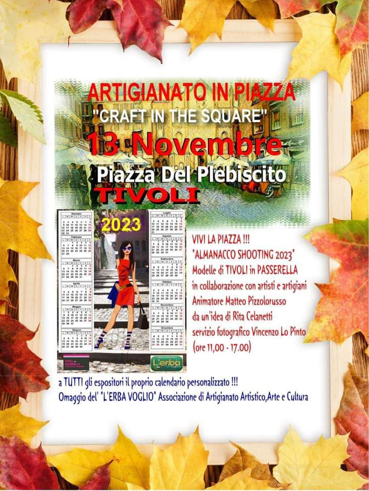 Organizzato dall’associazione L’Erba Voglio, ci sarà in questa domenica l’evento “Vivi la piazza- Almanacco shooting 2023” modelle di Tivoli in passerella. Animatore Matteo Pizzolorusso da un’idea di Rita Celanetti. A tutti gli espositori verrà regalato un calendario personalizzato.