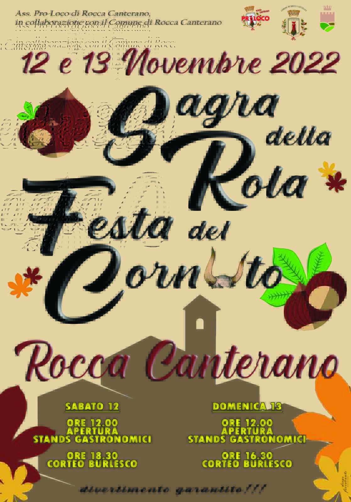 Durante la Sagra della Rola-Festa del Cornuto si festeggiano gli sfortunati traditi in amore con il corteo burlesco che si snoda per le vie del paese e durante il quale si portano in processione i simboli del tradimento coniugale mentre un poeta sbeffeggia i partecipanti. Stand con le specialità del luogo come Role (castagne arrosto), cecamariti (pasta tipica), panini con salsiccia e cicoria e tanto vino.