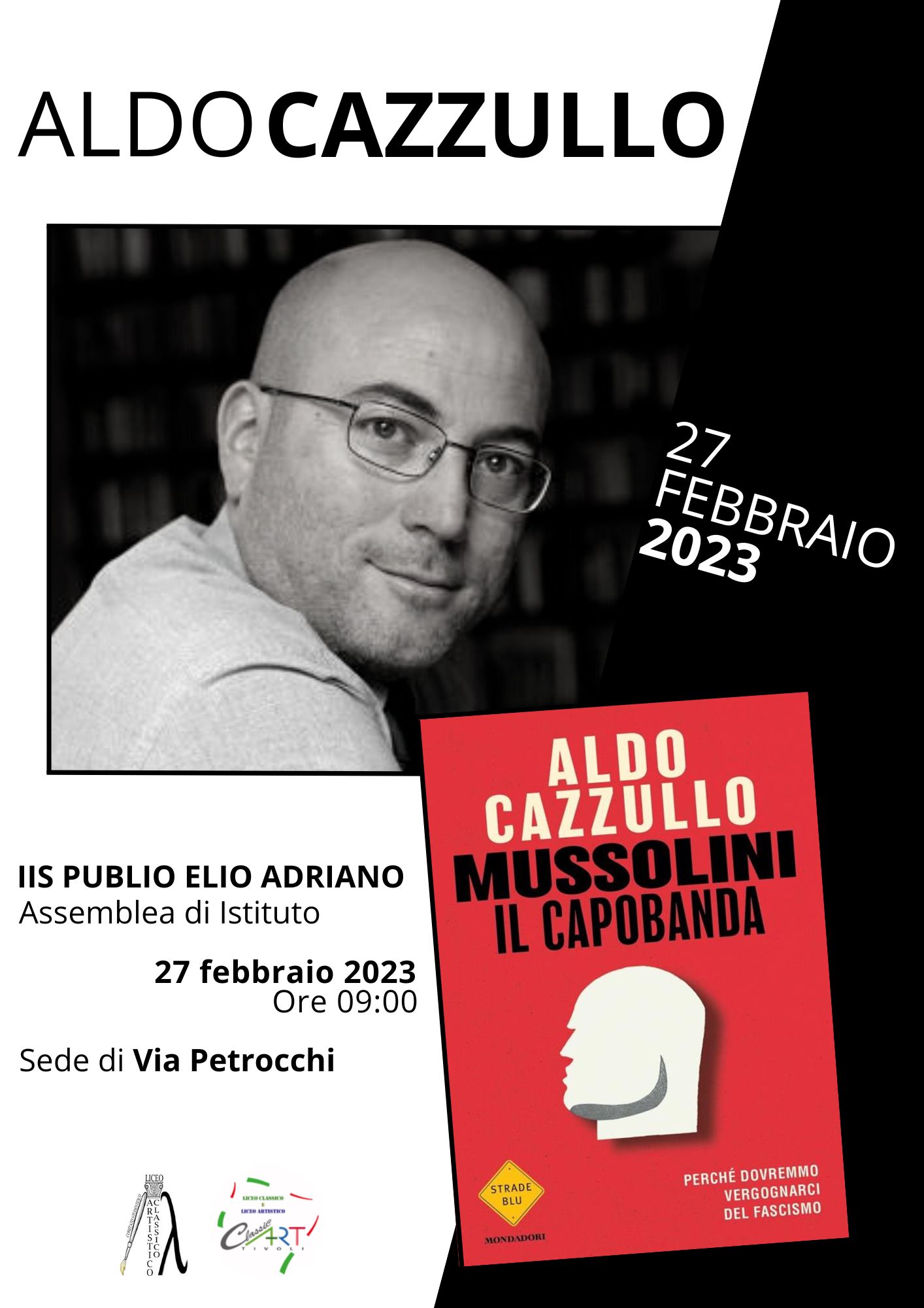 Il 27 febbraio alle ore 9 presso l’istituto Publio Elio Adriano all’interno dell’assemblea di istituto gli studenti incontreranno il giornalista Aldo Cazzullo che presenterà il suo libro “Musolini, il capobanda. Perché dovremmo vergognarci del fascismo”.