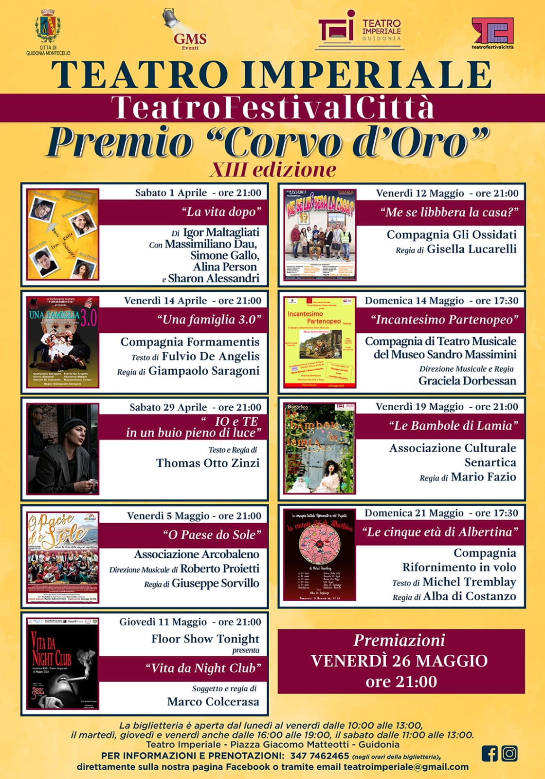Proprio il “Miglior Spettacolo” riceverà in premio l’ambito Corvo d’Oro 2023 che consiste nella partecipazione alla stagione ufficiale del Teatro Imperiale di Guidonia del 2024.