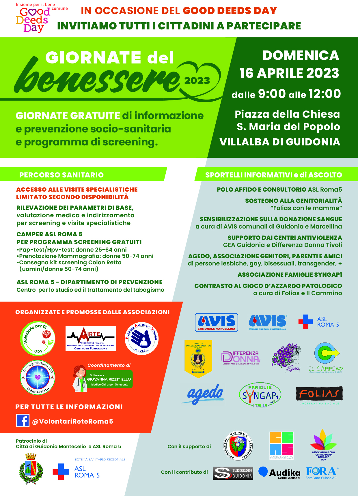 L’evento è inserito nel programma del giornate_benessere_aprile2023_A4_modorganizzato dal CSV Lazio ed ha ricevuto il patrocinio gratuito della Città di Guidonia Montecelio e della ASL RM5.