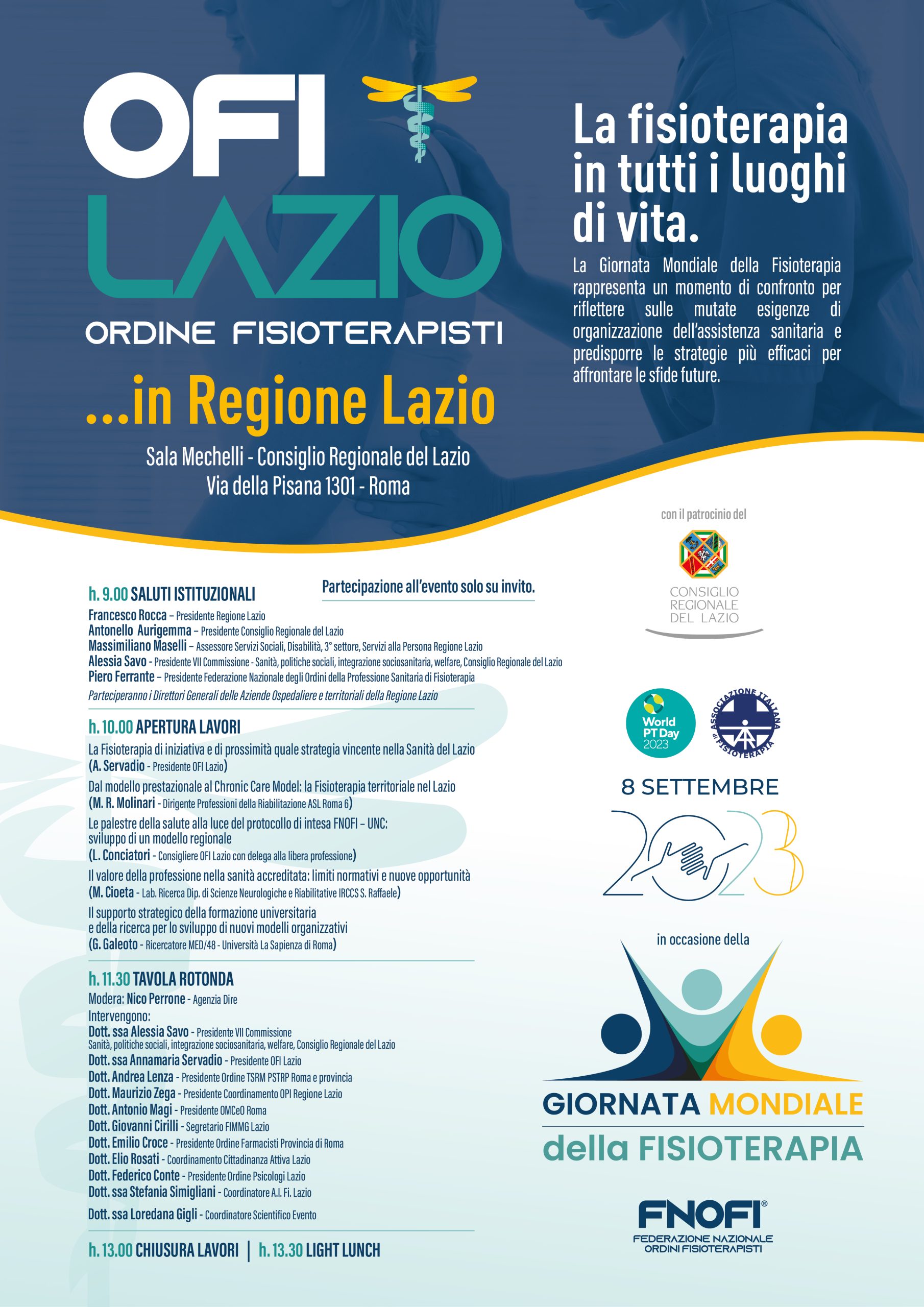 Un’intera giornata dedicata alla Fisioterapia. La celebra venerdì 8 settembre l’Ordine dei Fisioterapisti (OFI) del Lazio in occasione della Giornata mondiale della Fisioterapia, momento di confronto per riflettere sulle mutate esigenze di organizzazione dell’assistenza sanitaria e predisporre le strategie più efficaci per affrontare le sfide future.