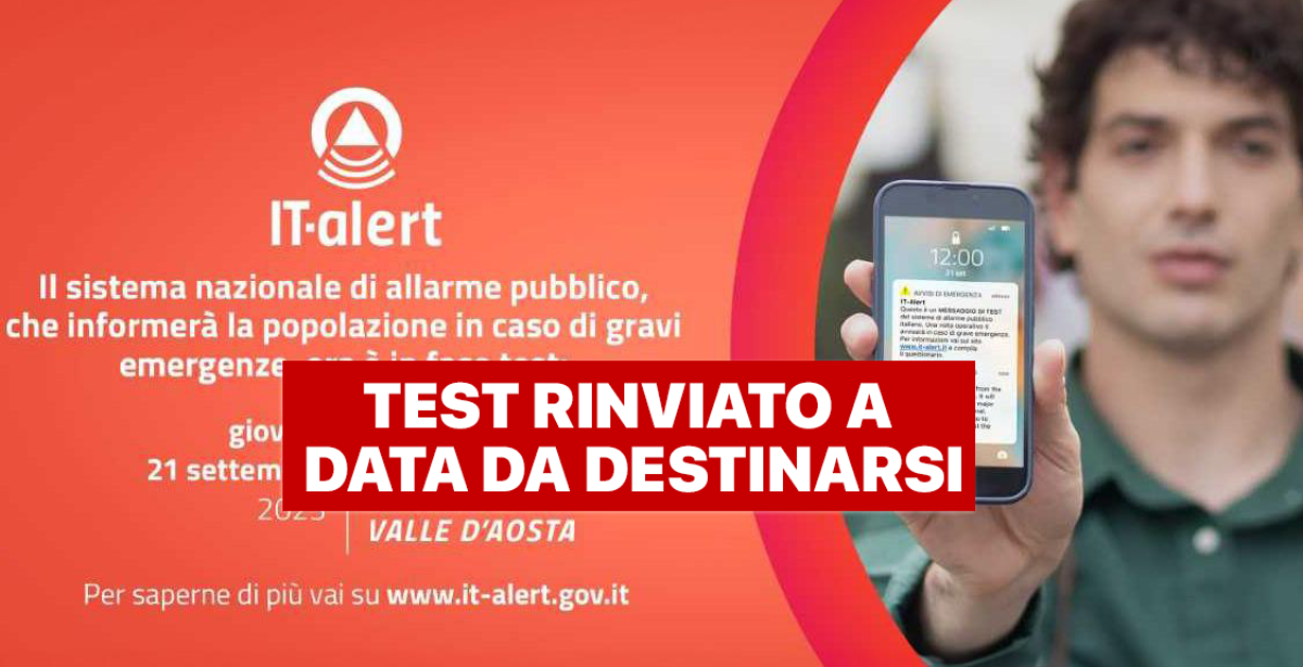 È rinviato il test di IT-Alert nella Regione Lazio previsto per giovedì 21 settembre a causa dell’allerta gialla per temporali prevista su tutto il territorio.
