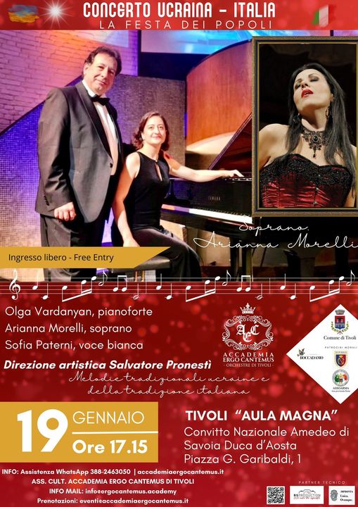Venerdì 19 gennaio alle ore 17,15 a Tivoli presso l’Aula Magna del convitto Nazionale Amedeo di Savoia si svolgerà un concerto per celebrare l’unione tra i popoli (Ucraina e Italia).