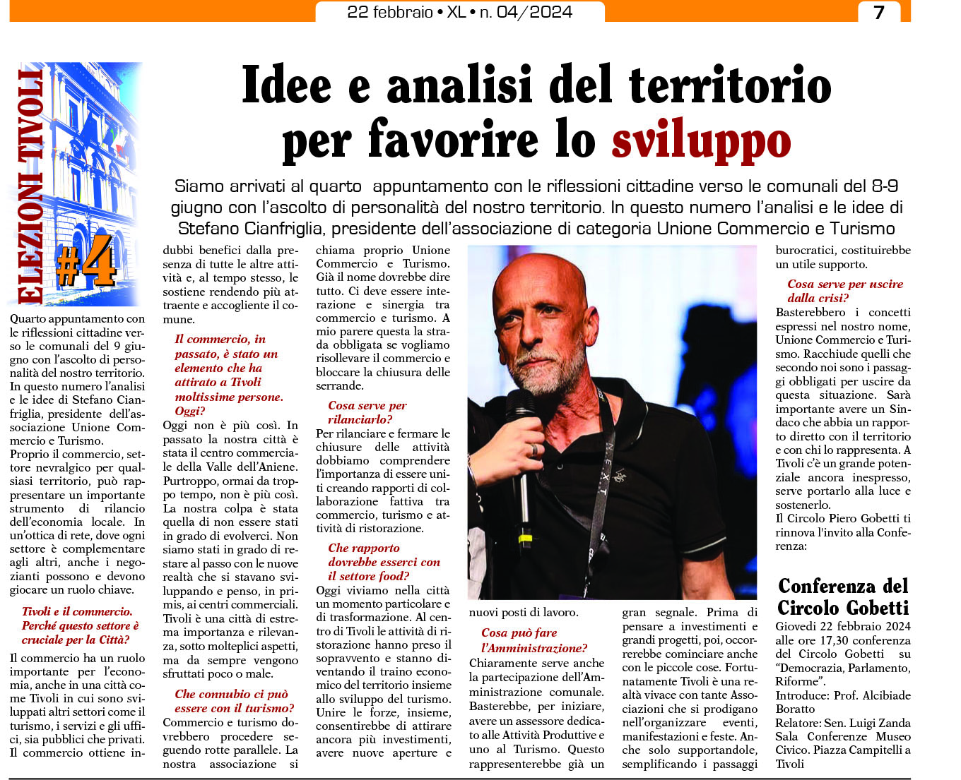 Quarto appuntamento con le riflessioni cittadine verso le comunali del 9 giugno con l’ascolto di personalità del nostro territorio. In questo numero l’analisi e le idee di Stefano Cianfriglia, presidente dell’associazione Unione Commercio e Turismo. Proprio il commercio, settore nevralgico per qualsiasi territorio, può rappresentare un importante strumento di rilancio dell’economia locale. In un’ottica […]