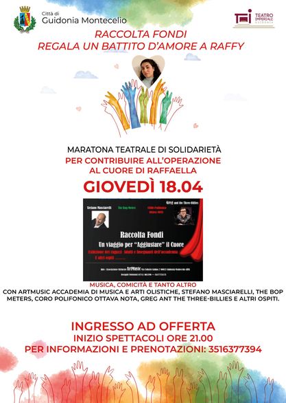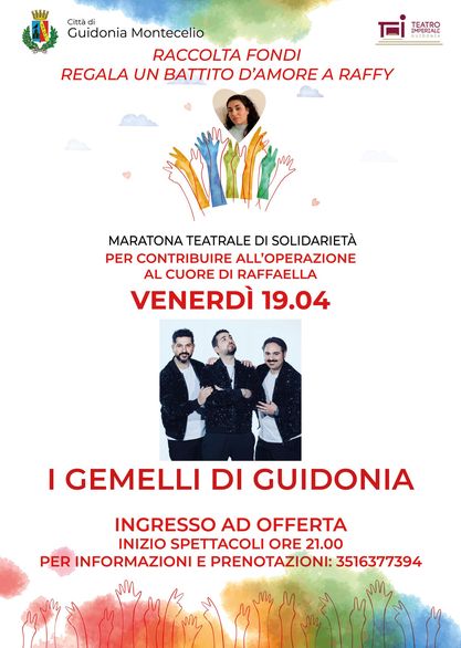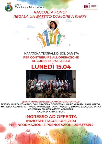 Il programma degli spettacoli organizzati dall’Amministrazione Comunale, in collaborazione con il Teatro Imperiale, per sostenere una giovane ragazza guidoniana che necessita di una delicata e costosa operazione al cuore negli Stati Uniti.