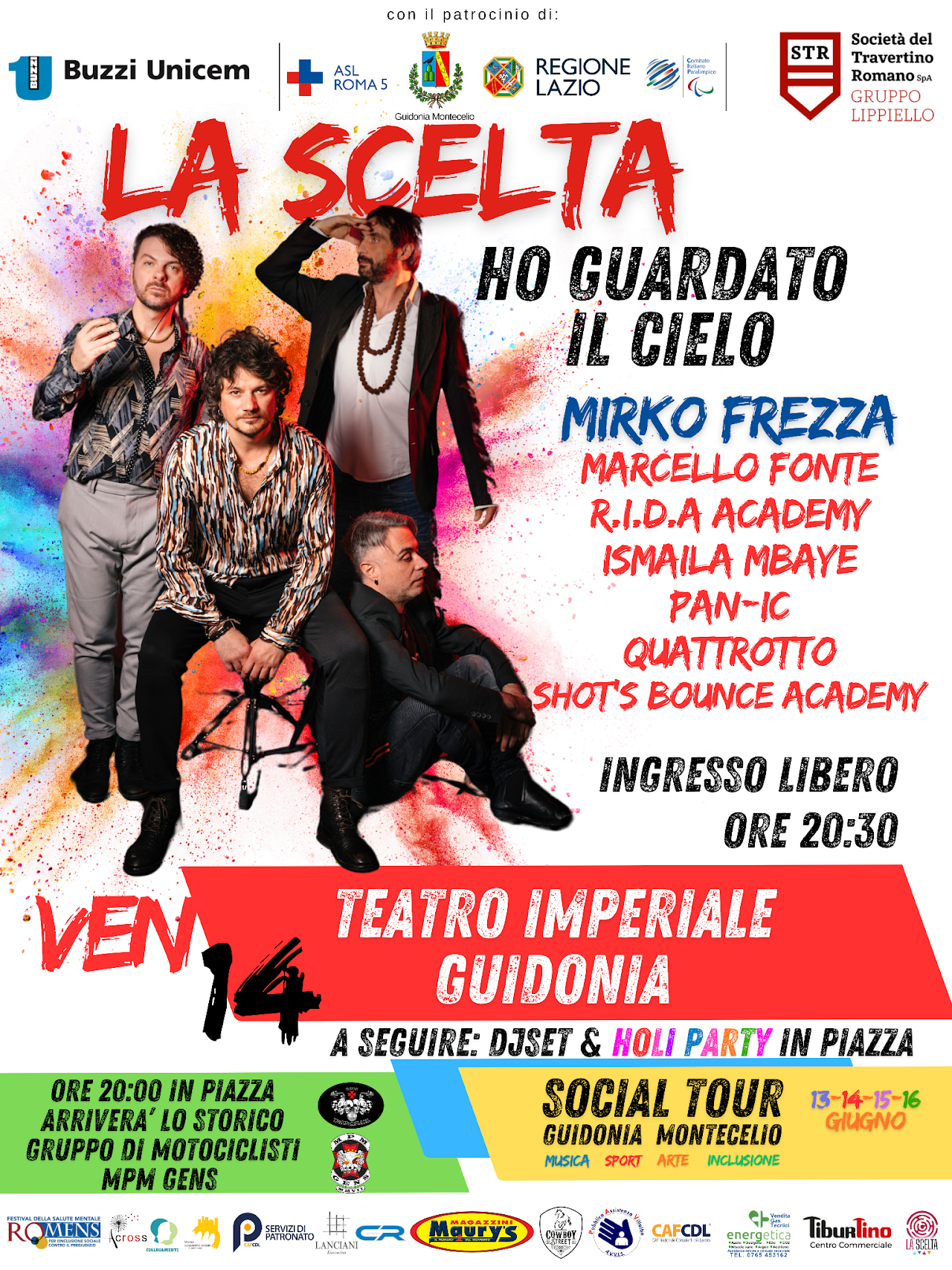 La band La Scelta, insieme a Mirko Frezza, Ismaila Mbaye, Marcello Fonte, R.I.D.A., Quattrotto Dance Company e Pan-IC, porterà in scena una performance musicale che esplora inclusione, rivalsa sociale e rinascita. Ingresso gratuito fino a esaurimento posti.