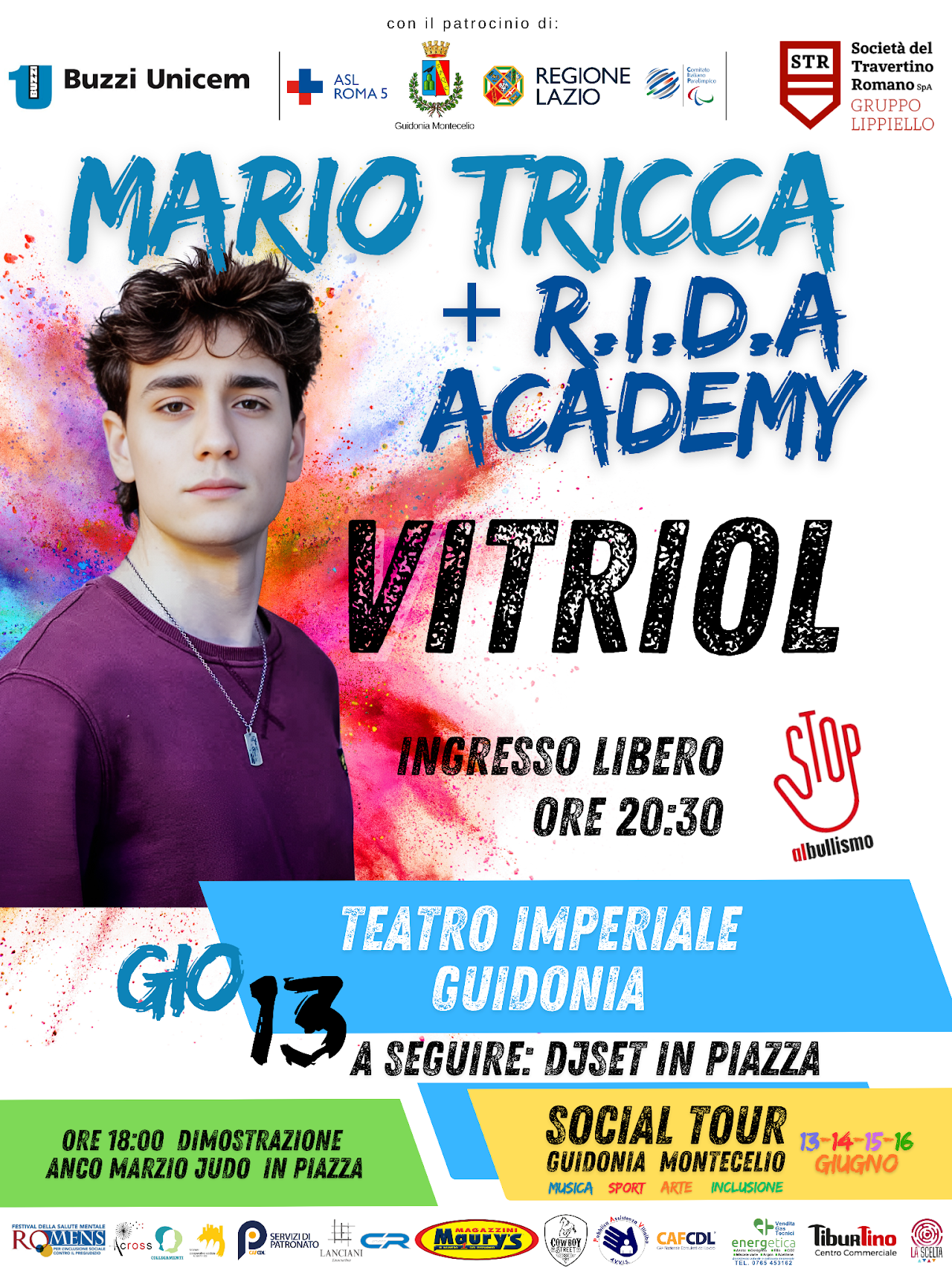Lo spettacolo inedito “VITRIOL”, scritto e interpretato da Mario Tricca con la partecipazione e le coreografie di Andrea Palombi e la Rome International Dance Academy, affronterà il tema del bullismo e del cyberbullismo, offrendo un punto di vista illuminante sull’impatto che tali fenomeni possono avere. L’ingresso è gratuito fino a esaurimento posti.