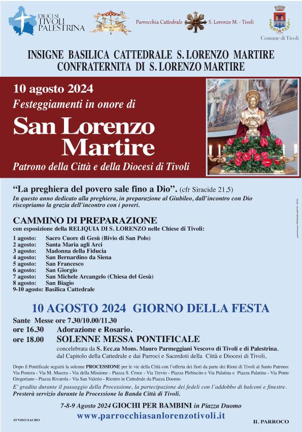 È iniziato giovedì primo agosto il cammino di preparazione alla festa di san Lorenzo martire, patrono della città e della Diocesi di Tivoli. Fino all’8 agosto la reliquia del santo sarà esposta nelle parrocchie della città, per sostare poi il 9 e 10 agosto in duomo.