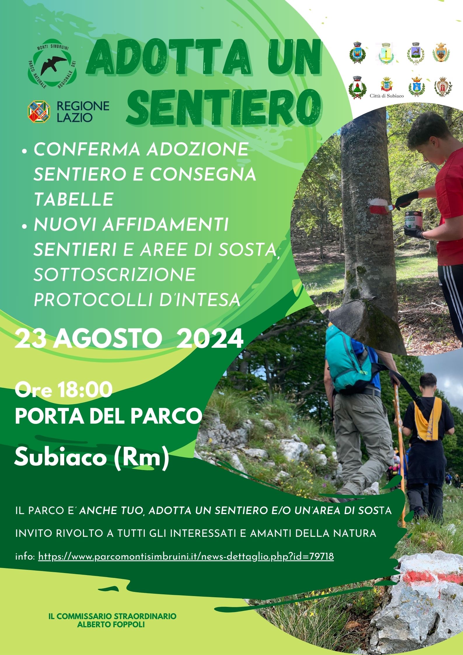 Un progetto che rientra nell’ambito delle azioni di tutela e valorizzazione della rete di fruizione escursionistica del territorio del Parco Naturale Regionale dei Monti Simbruini, e prevede l’impegno di associazioni locali di frequentare alcuni sentieri del Parco, per assicurare la piena fruibilità degli stessi svolgendo esclusivamente attività di ordinaria e semplice manutenzione e pulizia. Per il prossimo 23 agosto presso la Porta del Parco a Subiaco, si svolgerà un evento a cura dell’Ente Parco, durante il quale verranno consegnati alle associazioni che già fanno parte del progetto “Adotta un Sentiero” una targa di riconoscimento. Il momento sarà anche l’occasione per firmare nuove convenzioni.