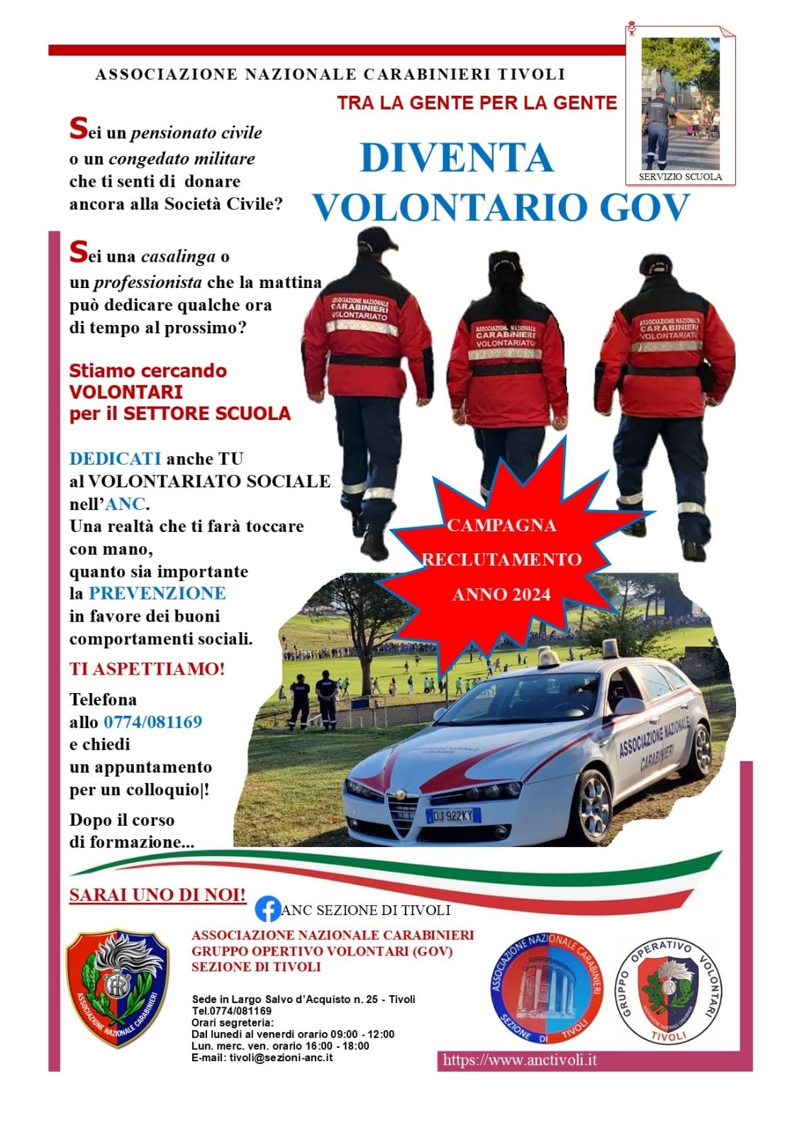 E’ aperta la campagna di reclutamento per tutti coloro che vogliono impegnarsi nel Volontariato sociale dell’ANC: sta per partire il nuovo corso di formazione, per chi volesse fare un’esperienza può contattare la Sezione ANC di Tivoli al numero 0774/081169 e chiedere un appuntamento per un colloquio alla segreteria.