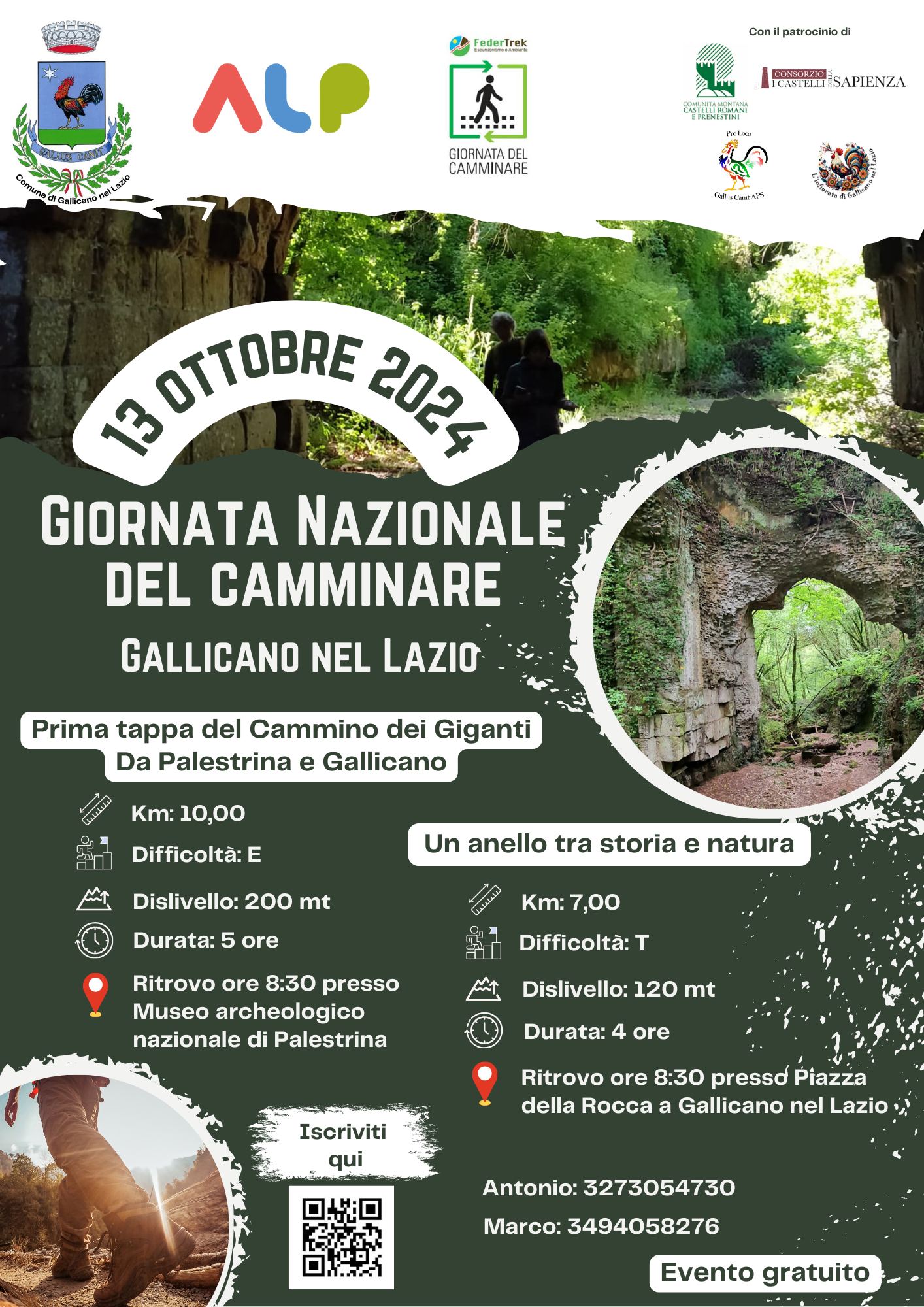 Nuovo appuntamento per gli amanti del trekking. Il 13 ottobre 2024, come ogni anno, ALP Alleanza Prenestina sarà pronta a celebrare la “Giornata Nazionale del Camminare” di Federtrek. Per Alp, questo evento rappresenta un’occasione fondamentale per riaffermare il proprio impegno e condividere le proprie visioni con un territorio a cui si dedica da tempo, attraverso la pratica inclusiva e costante del camminare. In questa edizione, si attraverseranno paesaggi straordinari, ricchi di bellezze storiche e naturali. Il borgo che accoglierà i partecipanti sarà Gallicano nel Lazio, uno dei principali punti di riferimento del “Cammino dei Giganti”. Come sempre, sarà una festa, un momento di condivisione e riflessione, con lo sguardo rivolto al futuro. Gallicano Percorso da 10 km Durata 5 ore. Ritrovo ore 8,30 presso il Museo archeologico di Palestrina Percorso da 7 km Durat 4 km, ritrovo ore 8,30 presso piazza della Rocca a Gallicano nel lazio. Info Antonio 3273054730 – Marco 3494058276