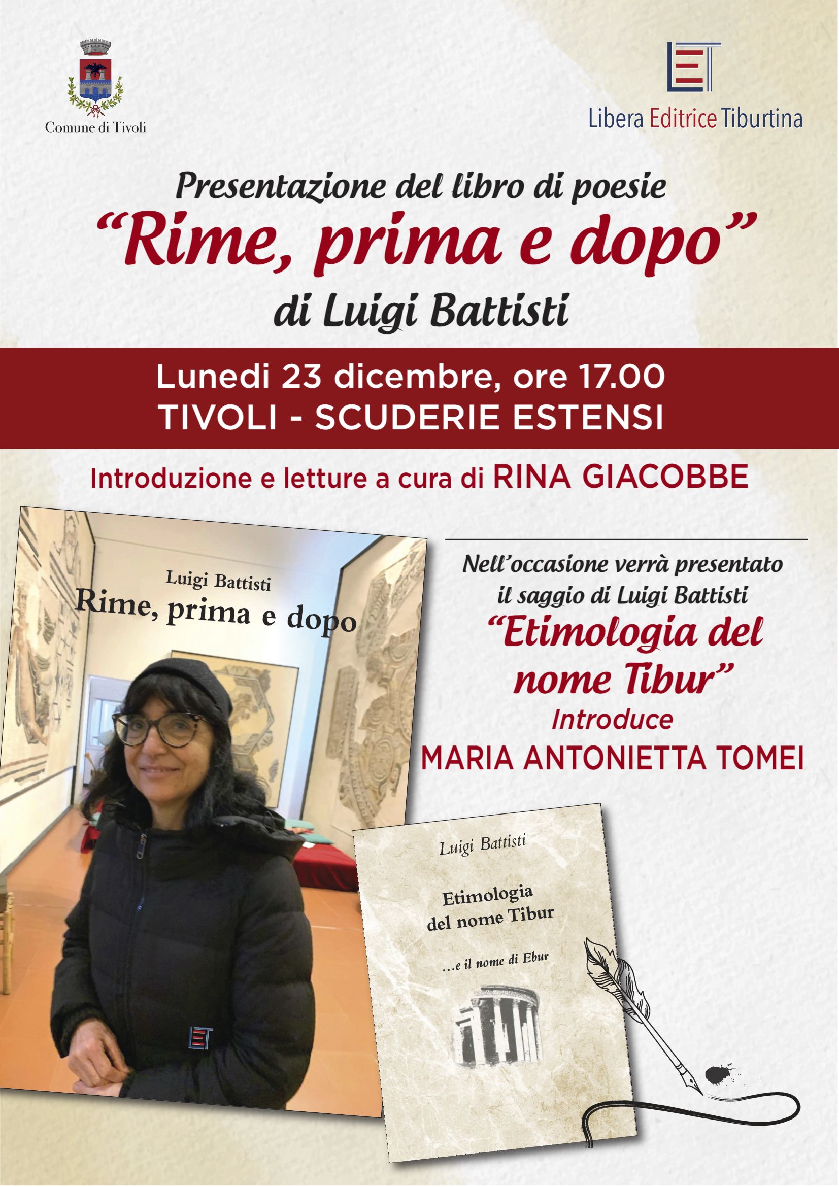 Lunedì 23 dicembre alle ore 17 presso le Scuderie Estensi a Tivoli presentazione del libro Rime prima e dopoL’amore non finisce mai” di Luigi Battisti.