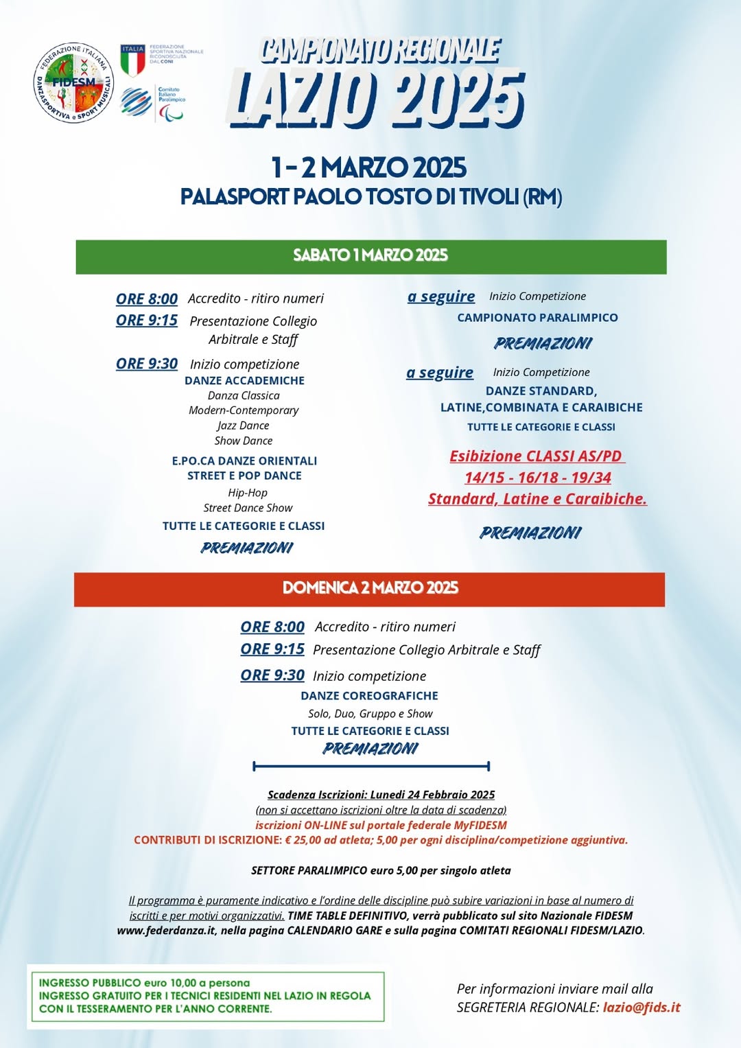 Il 1 e 2 marzo 2025, il Palasport Paolo Tosto sarà il palcoscenico di un evento imperdibile: due giorni di competizioni che vedranno protagonisti atleti di talento in una straordinaria celebrazione della danza sportiva regionale.