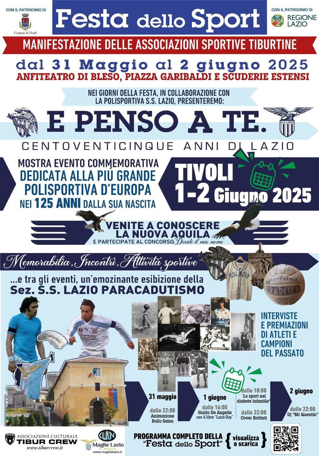 Dal 31 maggio al 2 giugno 2025, Tivoli sarà il palcoscenico della Festa dello Sport, una tre giorni dedicata all’attività sportiva, alla cultura e alla partecipazione cittadina.Le piazze e gli spazi storici della città si animeranno con eventi, spettacoli e incontri aperti a tutti. “E penso a te – 125 anni di Lazio”: una mostra […]