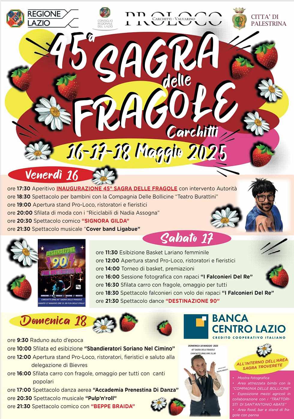 Fino al 18 maggio a Carchitti di Palestrina ospiterà la 45ª Sagra delle Fragole