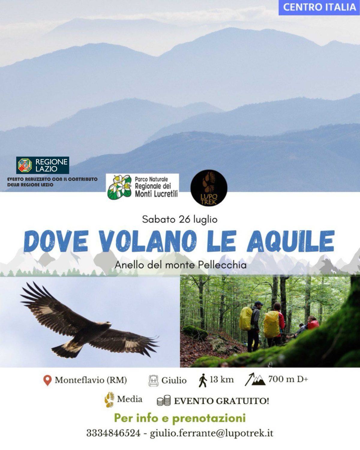 Un’escursione davvero speciale vi aspetta a Monteflavio, nel cuore del Parco Naturale Regionale dei Monti Lucretili: “Sulle tracce dell’Aquila Reale”, un’esperienza immersiva tra natura, silenzio e panorami mozzafiato.