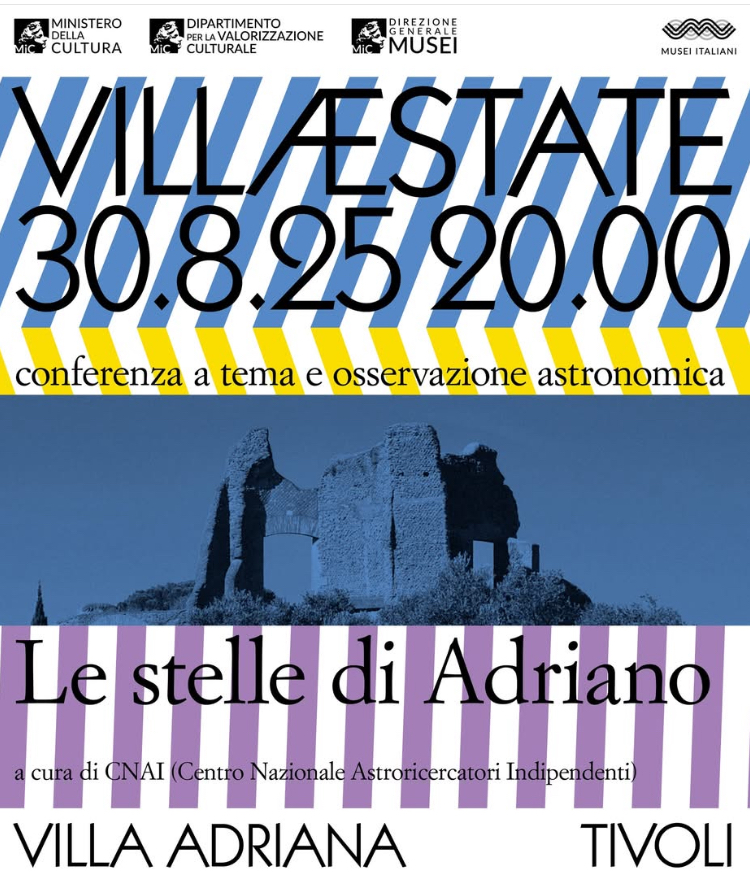 La magia di Villa Adriana incontra il fascino del cielo stellato: così si chiude VILLAEstate 2025, con una serata dedicata a chi ama storia, cultura e astronomia. L’appuntamento si aprirà con la conferenza “Osservare l’infinito – dal Paleolitico ad Adriano”, a cura del dott. Alessandro La Porta. Tra antichi osservatori e strumenti moderni, La Porta […]