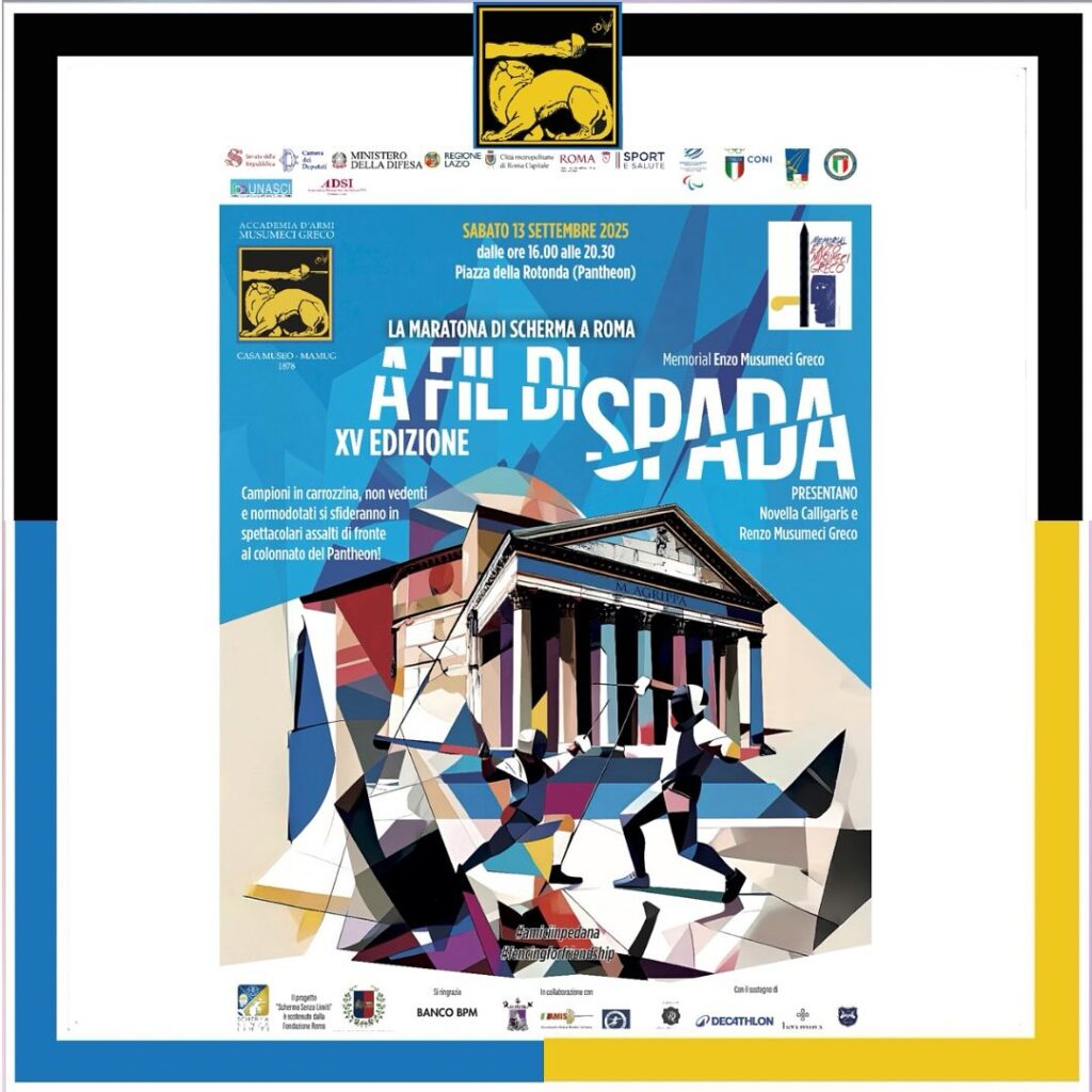 Il 13 settembre 2025 al colonnato del Pantheon a Roma si svolge A fil di spada, la più importante in Italia. Giunto alla sua XV edizione l’evento richiama appassionati, sportivi e curiosi da tutto il paese, che si volgiono cimentare in quest’arte antica. A fil di spada è organizzato dall’Accademia d’Armi Musumeci Greco, che vanta […]