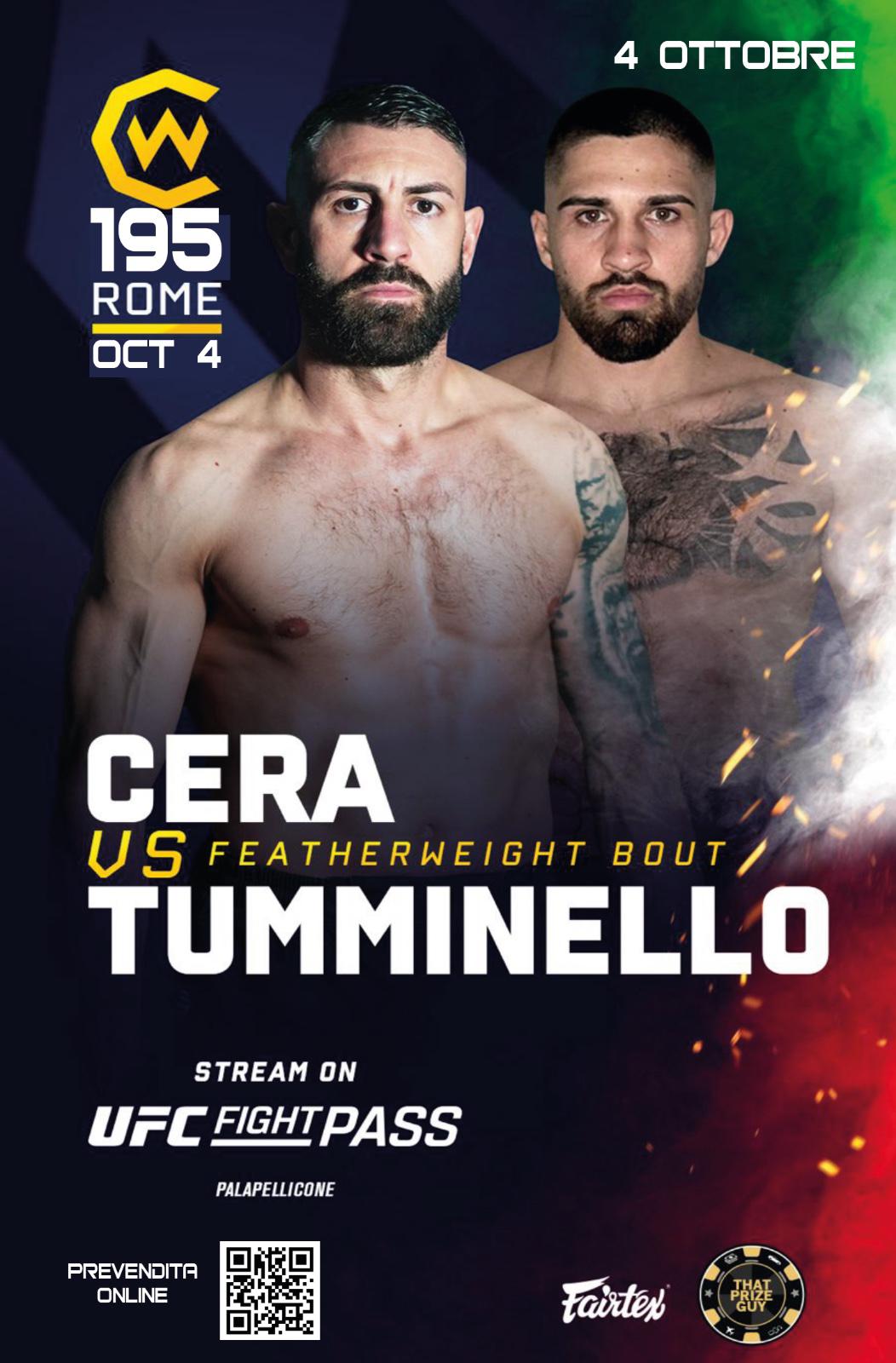 Il combattimento dell’atleta castellano, già noto nel panorama nazionale, è previsto intorno alle 19:30, all’interno di una card che inizierà alle ore 17:30. Cera affronterà l’avversario Tumminello, in un match molto atteso dagli appassionati del settore.